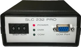 Der SLC232PRO, als Nachfolger unseres SLC232, ist weiterhin ein Protokollwandler der über die gute alte RS232 Schnittstelle mit einem PC oder einer Maschinensteuerung verbunden wird und direkt über ASCII Kommandos Daten auf einer DMX512 Schnittstelle ausgibt.