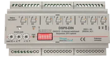 The DSP8-DIN includes several functions for opening and closing motorized curtains and blinds by button events or “one fader” control, mutual locking of relays, fader to 4 relay switch and a 8 channel sequencer expandable up to 80 channels.