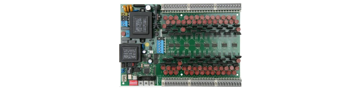 The zero-crossing-switch, WAGO cage clamps of the load outputs and the connector for external code-switch. The maximum load is 70W per channel at 230V ~. For other voltages, the current must not exceed 16A in total and 1A per channel.