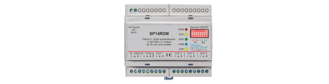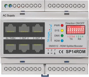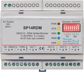 The SP14RDM is a DMX 512 Splitter & Booster for DIN rail mounting