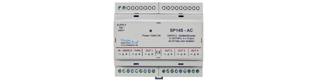 and amplifying unit in a standard DIN rail enclosure with 1 input, thru